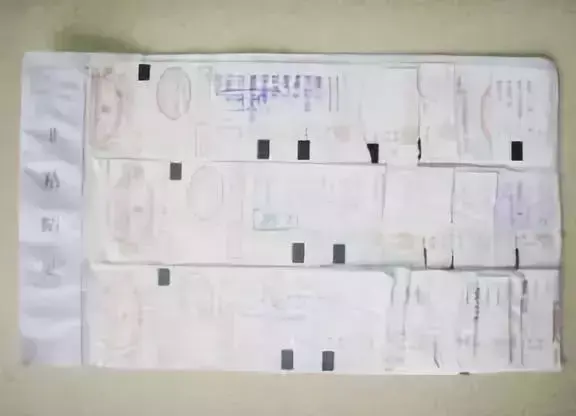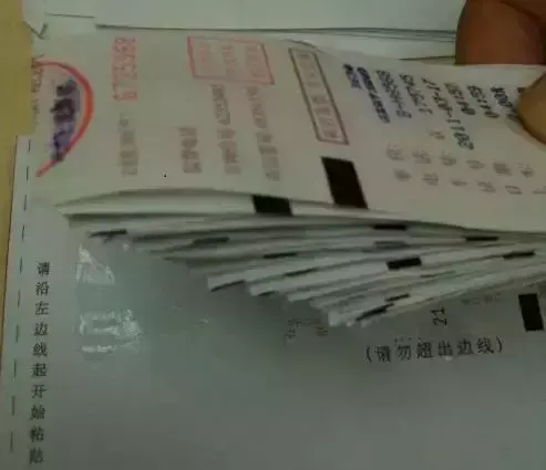 STEP2:然后将它们弄出一个斜坡,然后在纸上涂满胶水,直接将一叠发票的斜坡整体贴上去,就大功告成了,速度绝对非常快,绝对非常快,绝对非常快。(论如何让审计发疯)