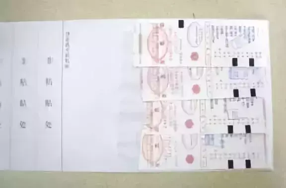 2、粘贴的票据与粘贴单上下、左右对齐,不可超过贴贴单上下及左右边界,每张票据约错开1厘米左右的距离,票据呈鱼鳞状分布。