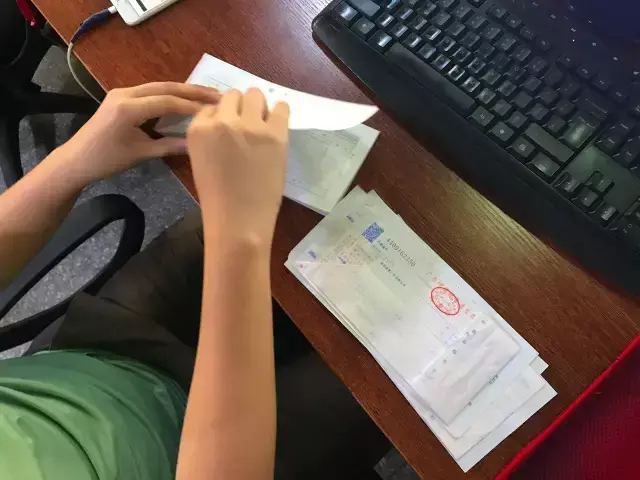 但 100 多张报销单叠在一起的时候,是很容易哗啦一下就散了的。接着我就要一张一张再兑日期放好。