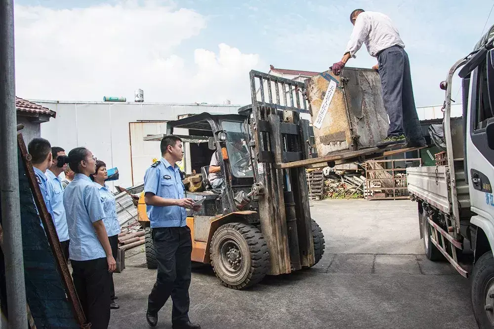 为保障执行顺利进行,天台法院派出17名执行干警, 6辆警车,1辆执行指挥车现场参与执行,5套单兵执法记录仪现场全程录音录像,执行局长王卫在执行指挥中心通过远程指挥视频系统全程指挥此次强制腾空。在执行指挥中心的精心部署和有效指挥下,整个现场执行过程全程在掌控之中,十余家承租户30多人现场清理完毕,被执行人公司内留置物品全部腾空完毕,案件最难啃的强制腾空顺利完成。