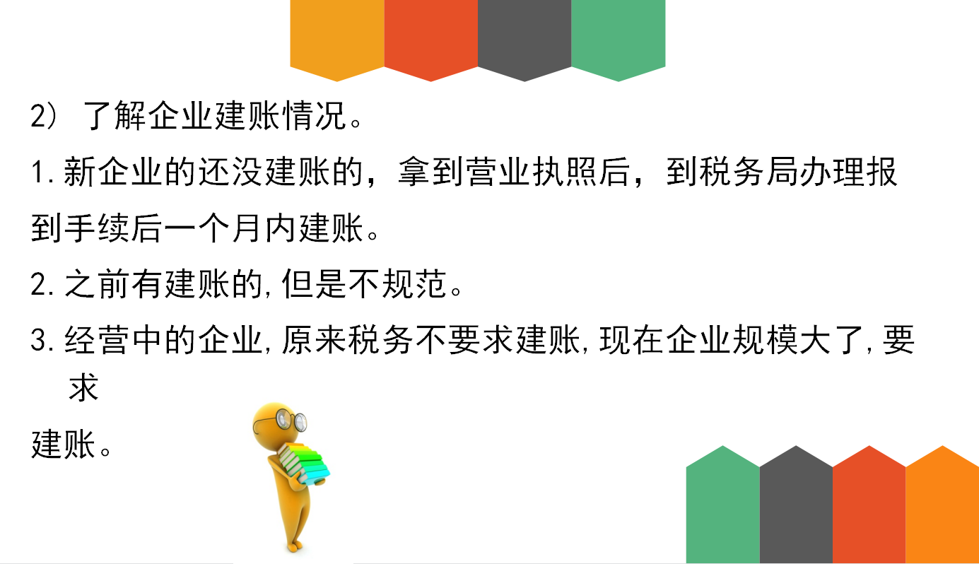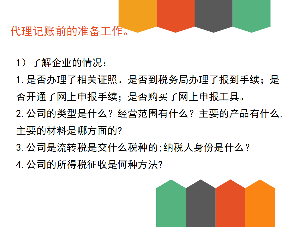 代理记账会计接手的不止一家企业,每个企业所涉及的范围都是有所不同的,首先就是要先了解企业的经营、财务情况,是否办理了相关证照,新企业是否建账等等,这是接账之前必须要先了解的。