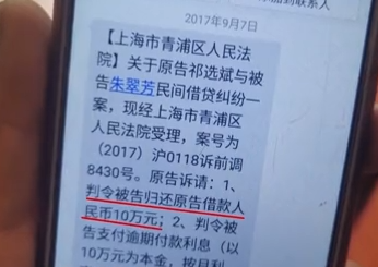还没等到祁某租不租房的明确答复,反而被老租客给告了,当时的朱阿姨也是一头雾水,并且信息上显示,说自己欠祁某10万元,要求偿还他本金和利息。