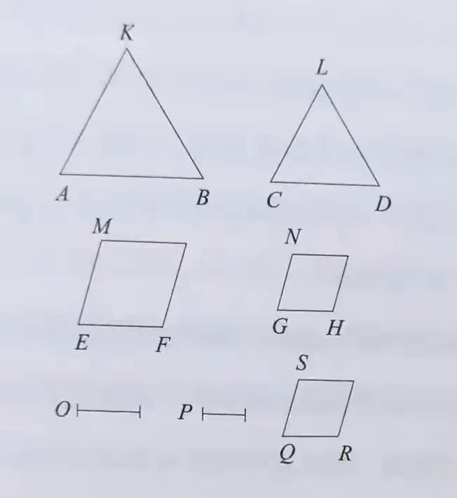 6、因为AB比CD等于EF比QR。在AB、CD上作有相似位置的相似直线形KAB、LCD,在EF、QR上作有相似位置的相似直线形MF、SR,所以KAB的面积比LCD的面积等于MF的面积比SR的面积。