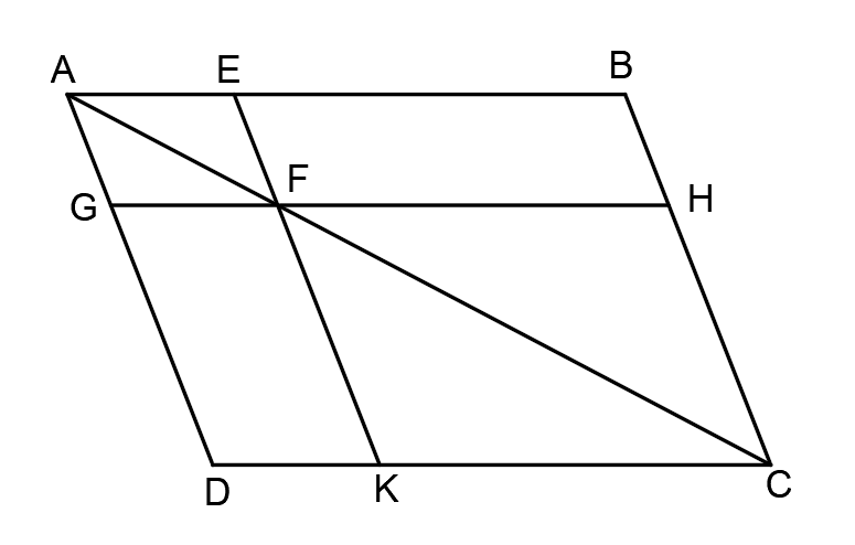 设ABCD是平行四边形,AC是其对角线。设平行四边形EG、HK的对角线为AC。