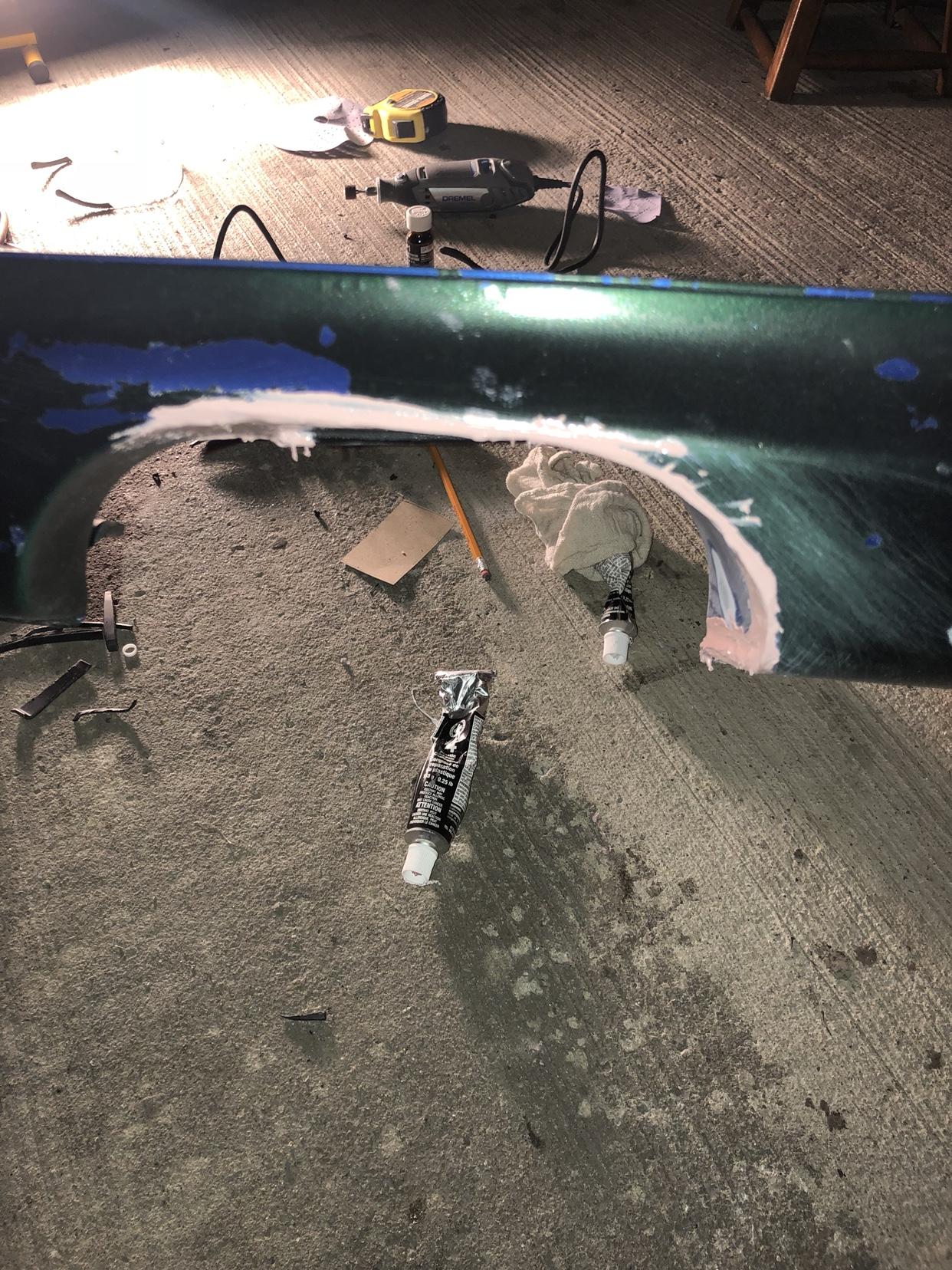经过几个小时的切割整平,形状终于变合适了,加上补土,等到干燥之后会将切口形状打磨成平滑的曲线,然后再上油漆。