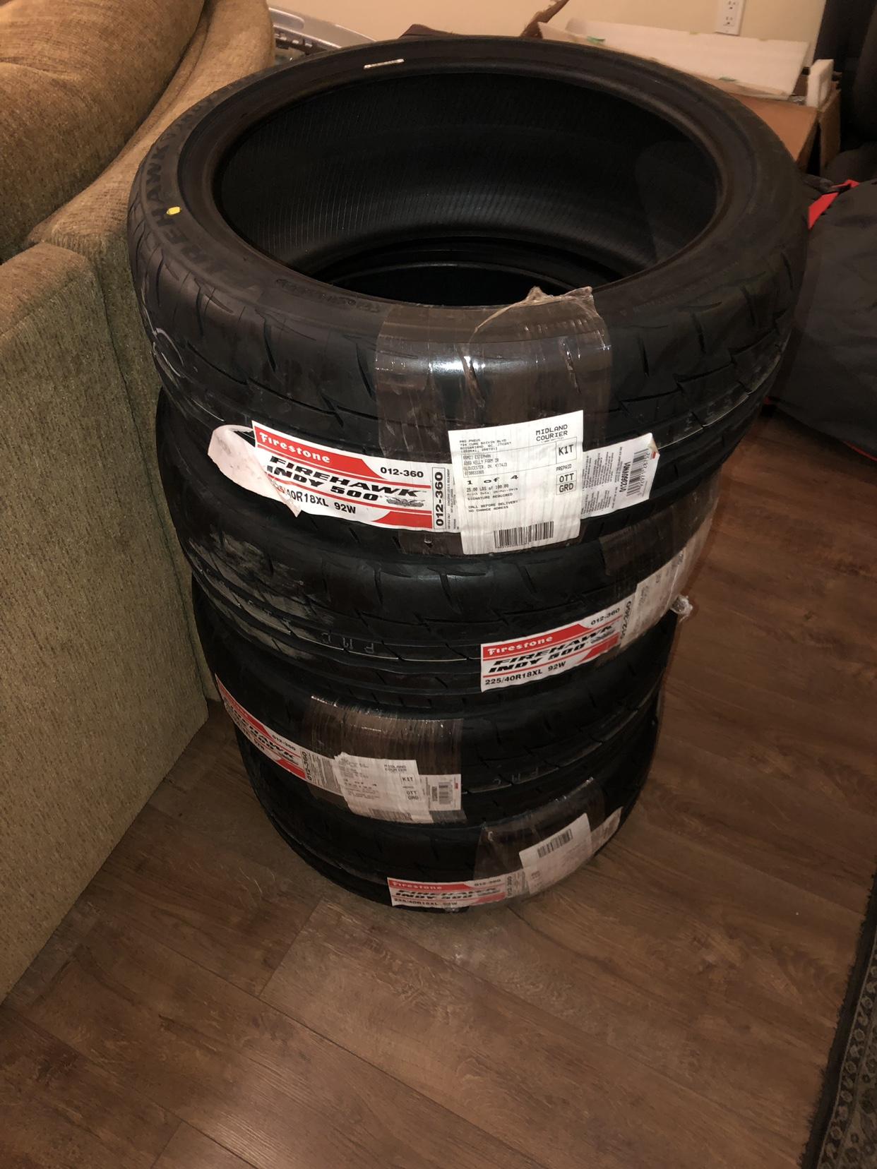 而轮胎也终于到了,最终我选择了225/40 R18的Firestone Firehawk Indy500,国内叫做凡士通或者风驰通。这是一款夏季轮胎,听到了许多对这款轮胎的好评,四条胎售价加运费为为670美元,希望它能为我争取到新的记录。