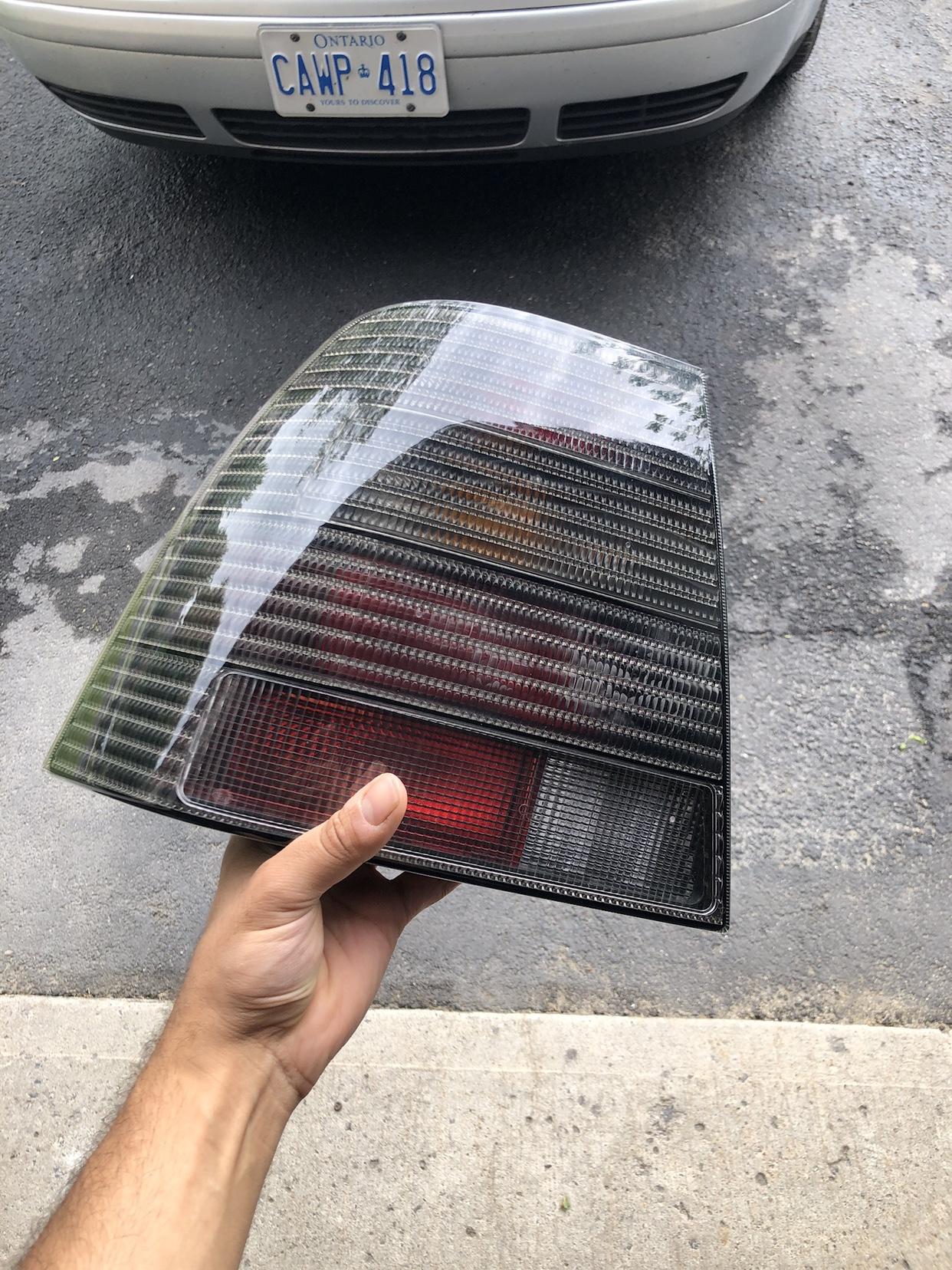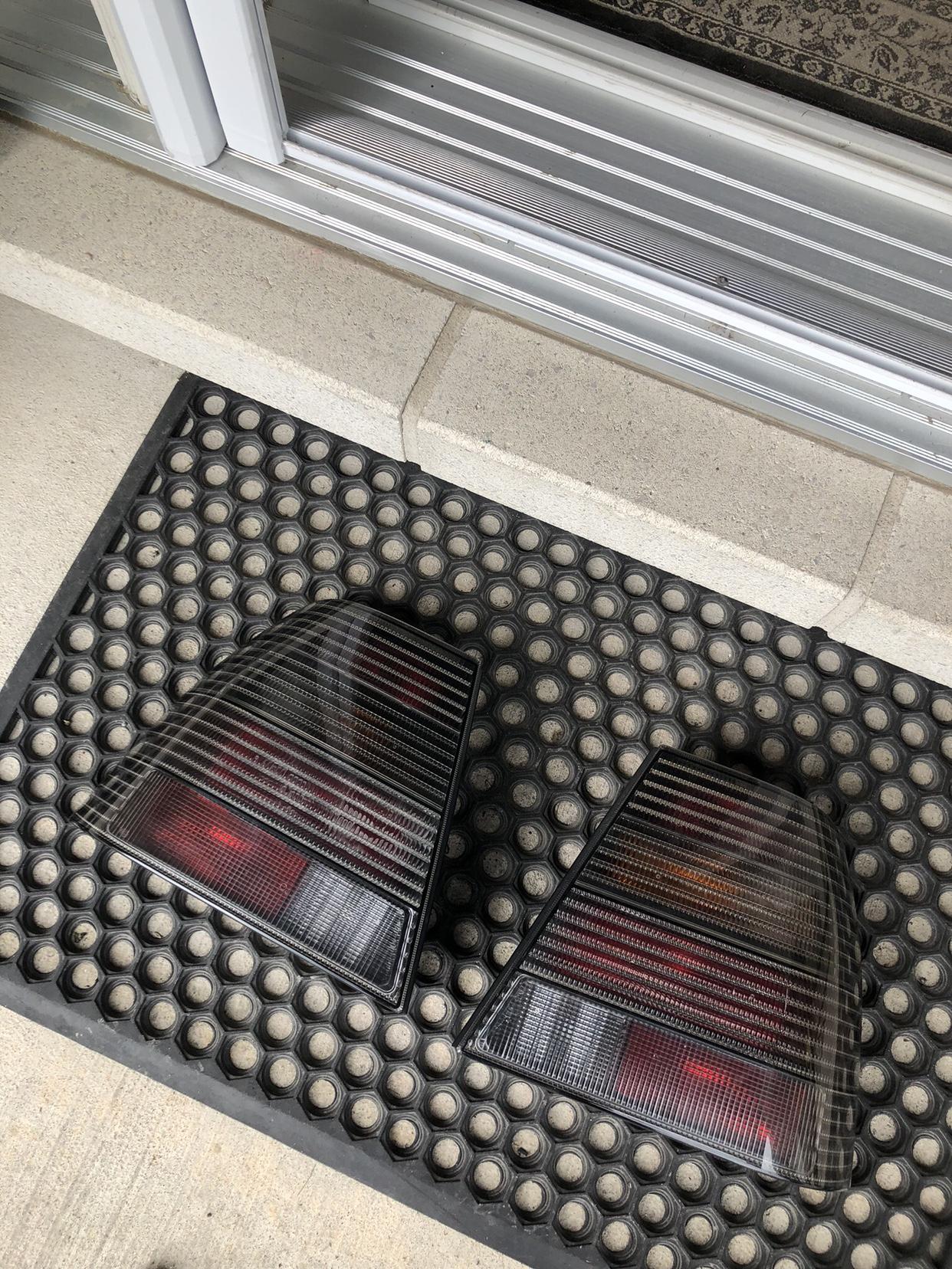 上次事故中,1.8T的左侧尾灯被撞毁了,而我在脸书上发布了一个求购信息,得到了一个令我心动的回复,于是下面这两个尾灯就从爱尔兰运到了安大略,品相超新,是库存的货物。