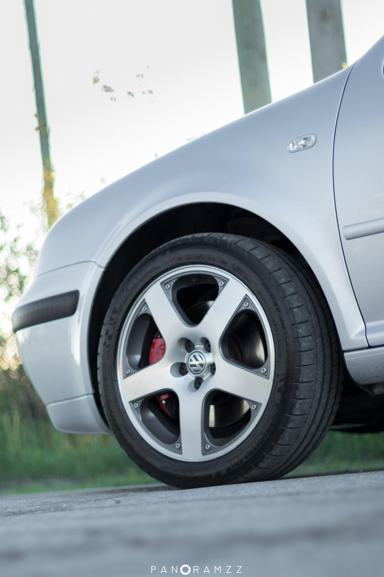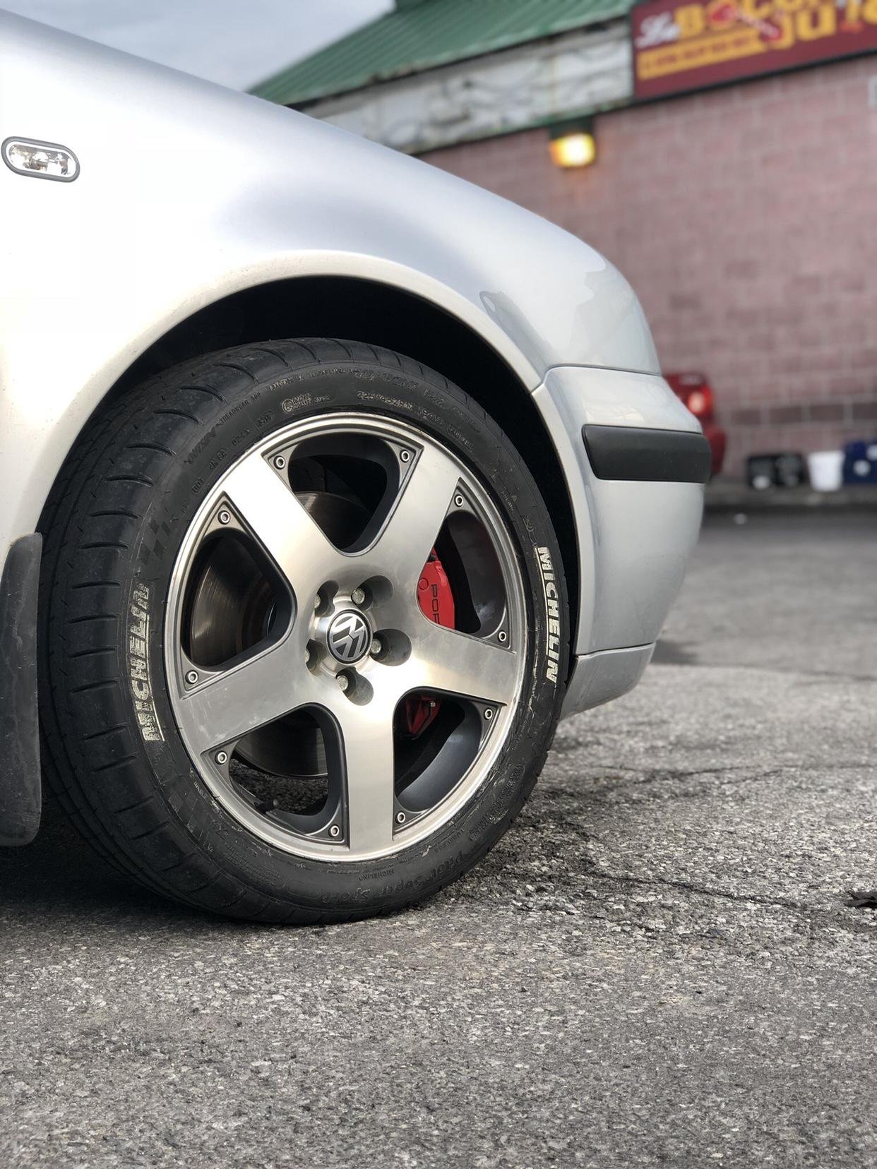 1.8T车型上的米其林Pilot运动型轮胎被我保留下来,装在了VR6的17寸轮毂上,并将保时捷Boxster的BBK刹车一同装在了车上。