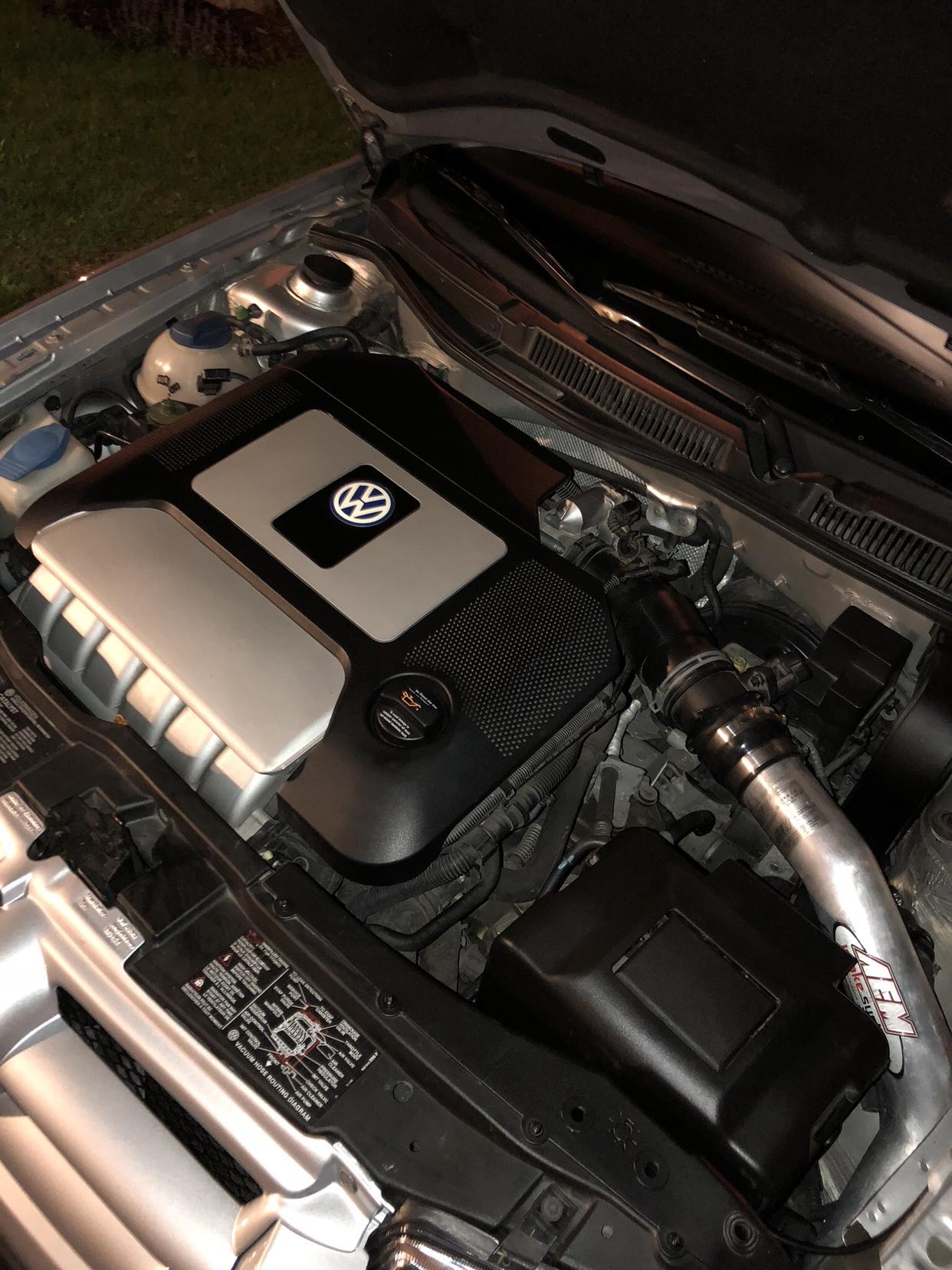 将车开回家之后,我开始出售1.8T车型的改装件,并保留了所有适合VR6的零件,包括了PZWO中网格栅、FK进气外饰、同色前杠下格栅、海拉HID头灯、前杠、黑色防擦条(很快会涂成银色)、1.8T车型银色仪表盘、AEM高摄入量进气,并深度清洗了发动机舱,之后的一周里我一直驾驶这样状态的它。