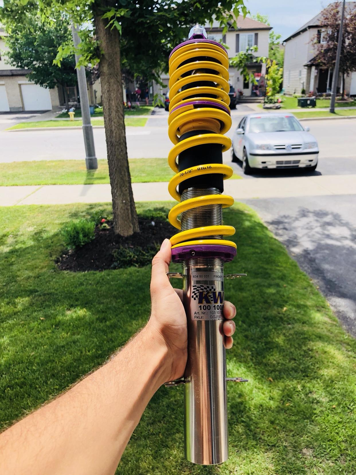 在尽可能的将老零件消化完成之后,新零件的购买被我提上了日程。掰指头算着自己的经费后,我首先入手的是一套全新的KW避震入门产品——Variant 1 coilovers (费用1300美元,国内售价不详)。在街道上驾驶过后发现消费体验非常好,百分百推荐这款避震。