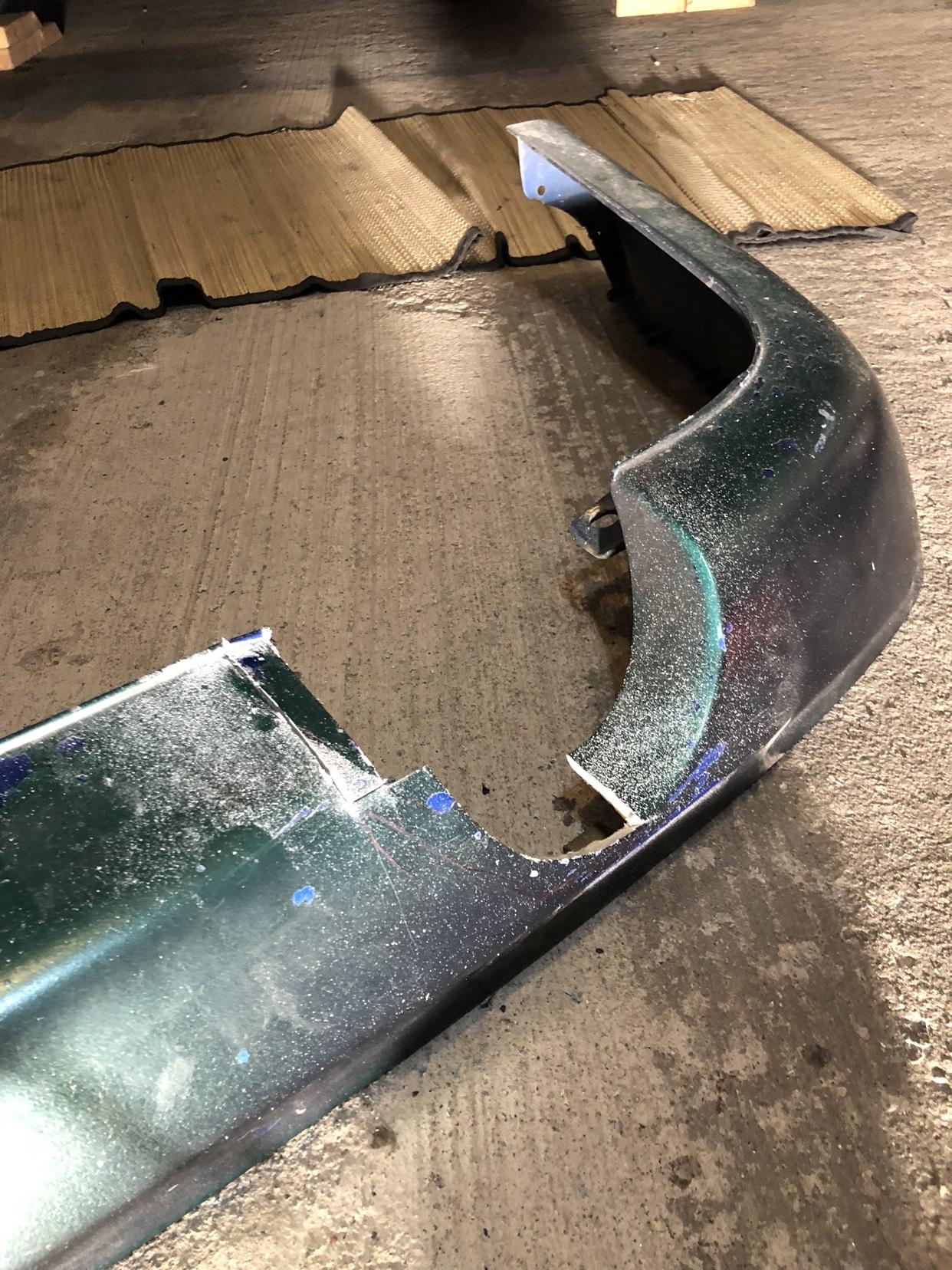随后我有收了一只二手GLI尾唇,原色是蓝色的,但现在上面涂了一层黑绿色的油漆,但没关系可以重喷,我会将其切割,来配合我的单边双出排气口。
