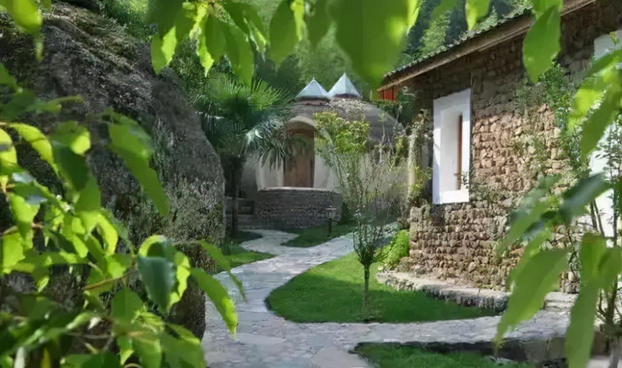 ▲清晨的一缕阳光唤醒你,推开屋门,曲径通幽