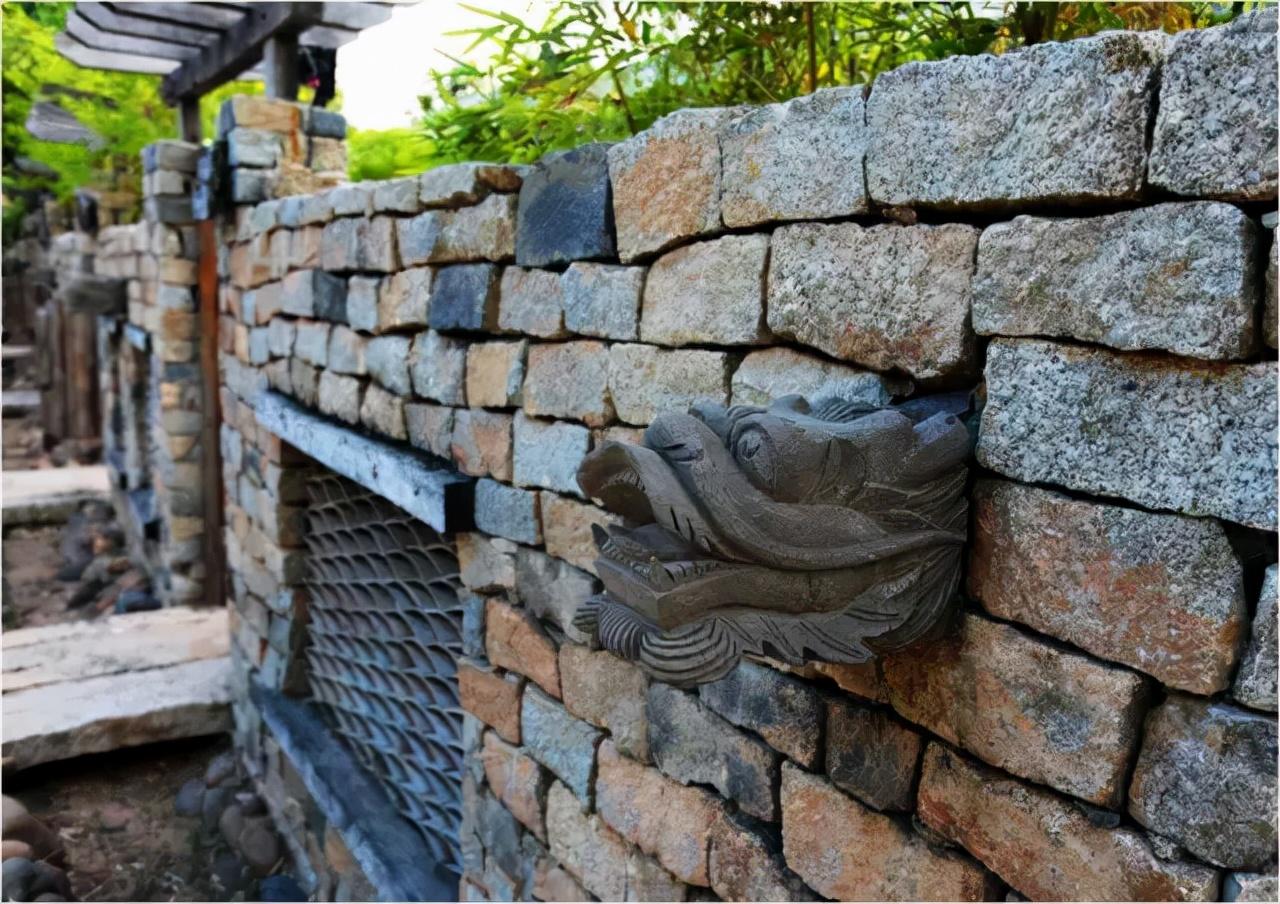 墙面的是石雕与旧砖墙的结合,陈旧的宁静