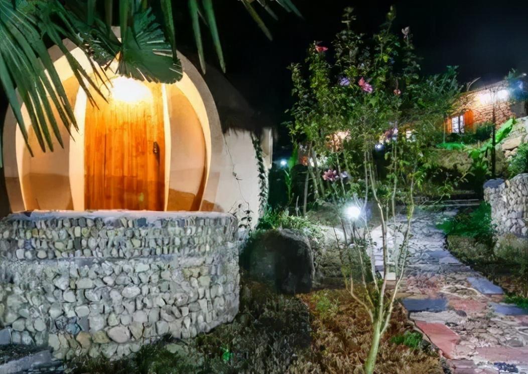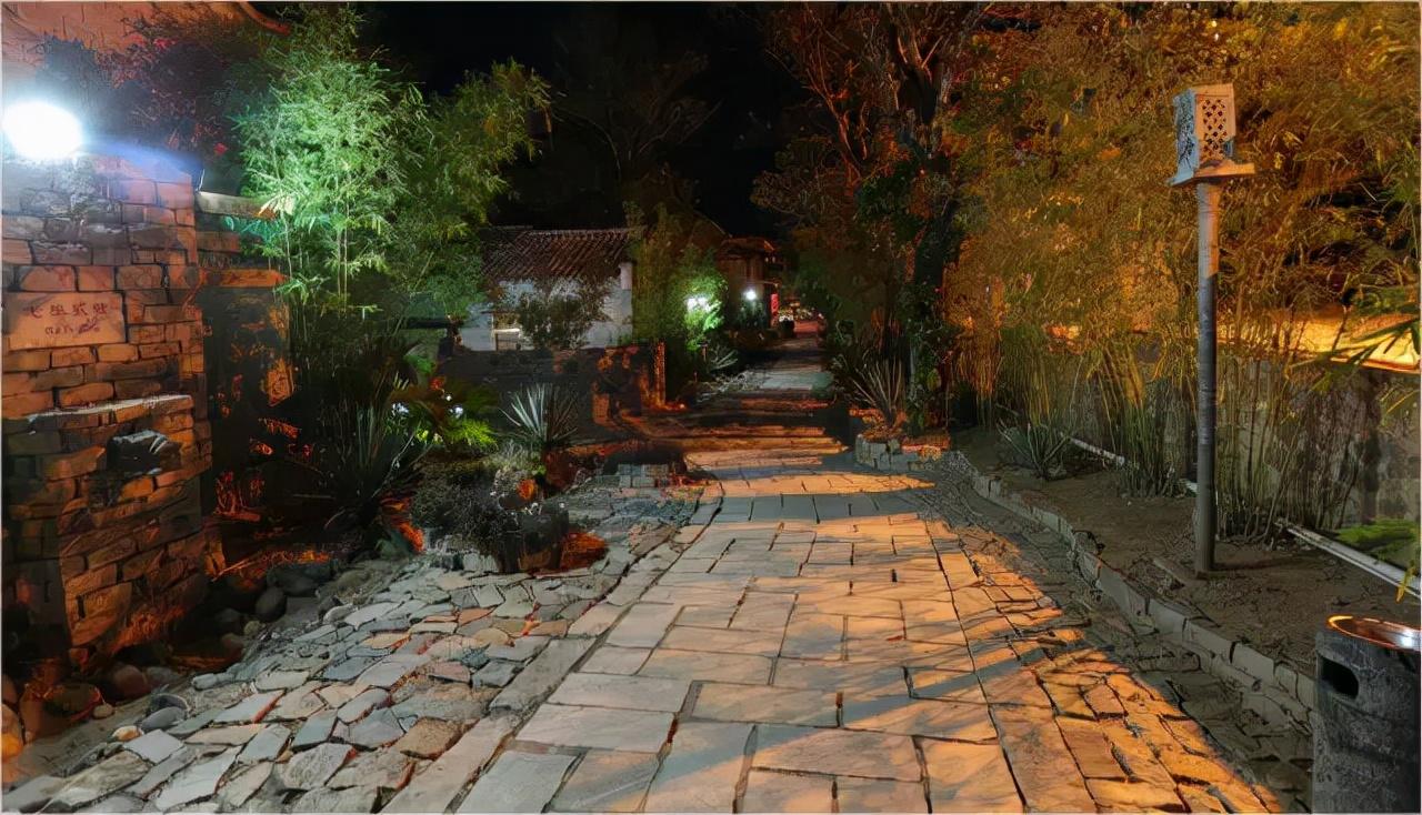 院落各有不同,有石板铺的小道,散落各处的鹅卵石,石桌、竹子,设计中充满意境。进入小院内,有树有石凳,到了晚上还有射灯,让人感觉到非常宁静。