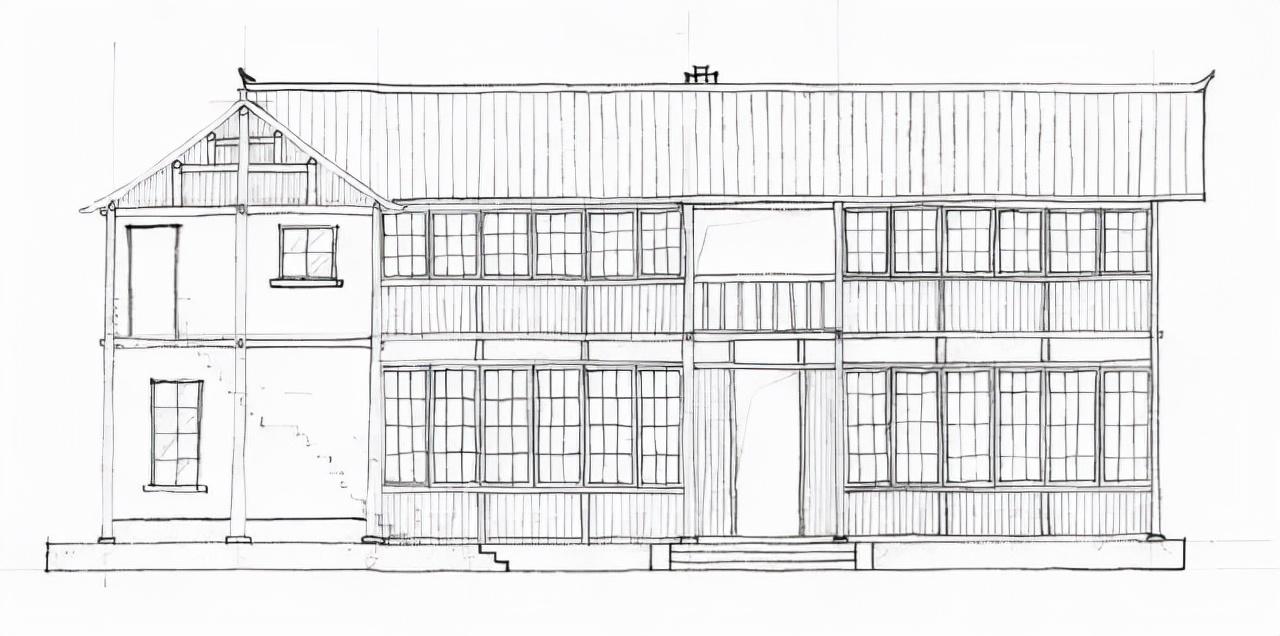 ▲川蜀之地,绵延细雨,屋内的光照不足,增加进光量成了我们首要要解决的问题。立面的开窗也有利于通风和光照,因此我们想重新对立面设计改造。