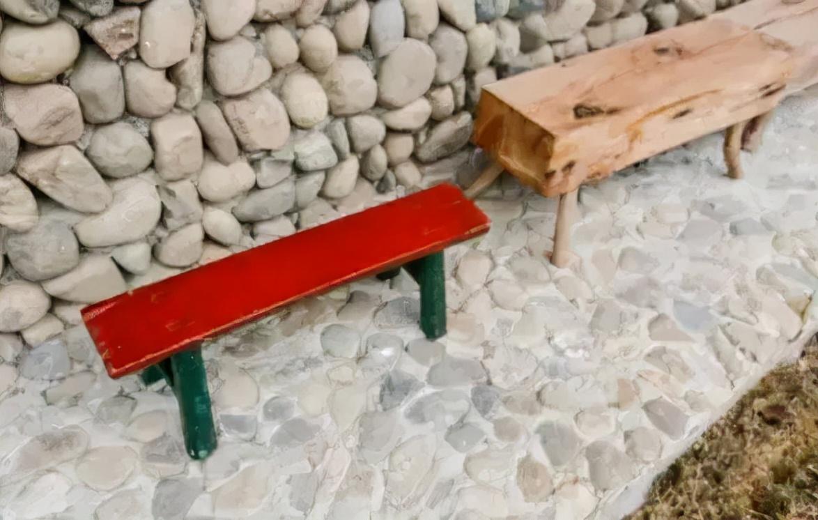 ▲破败的门窗,以及青石与吱扭作响的座椅。