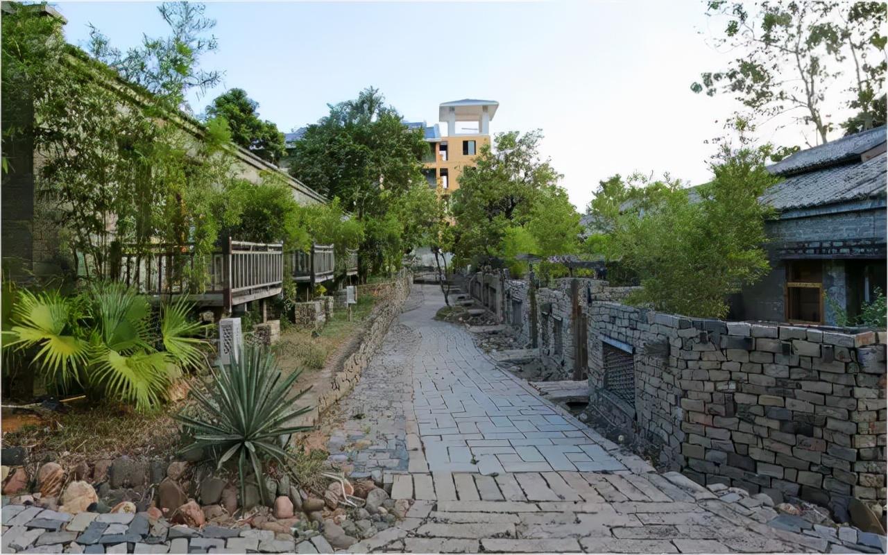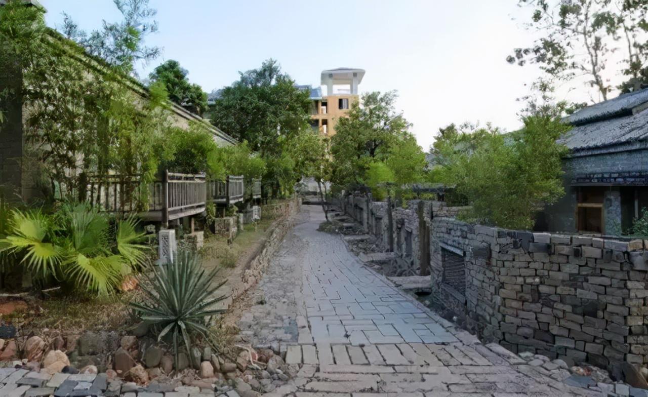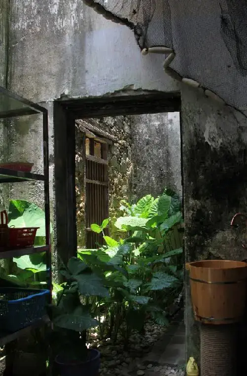 房舍分为三排,最边侧是一条直接通向前厅的石板小道,两旁是葱郁的绿色植物,还有翠竹;一套一个院落,进入院子都是打开半人高木门。