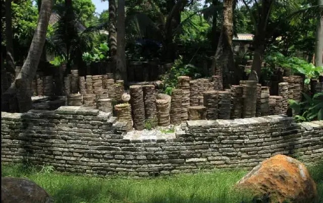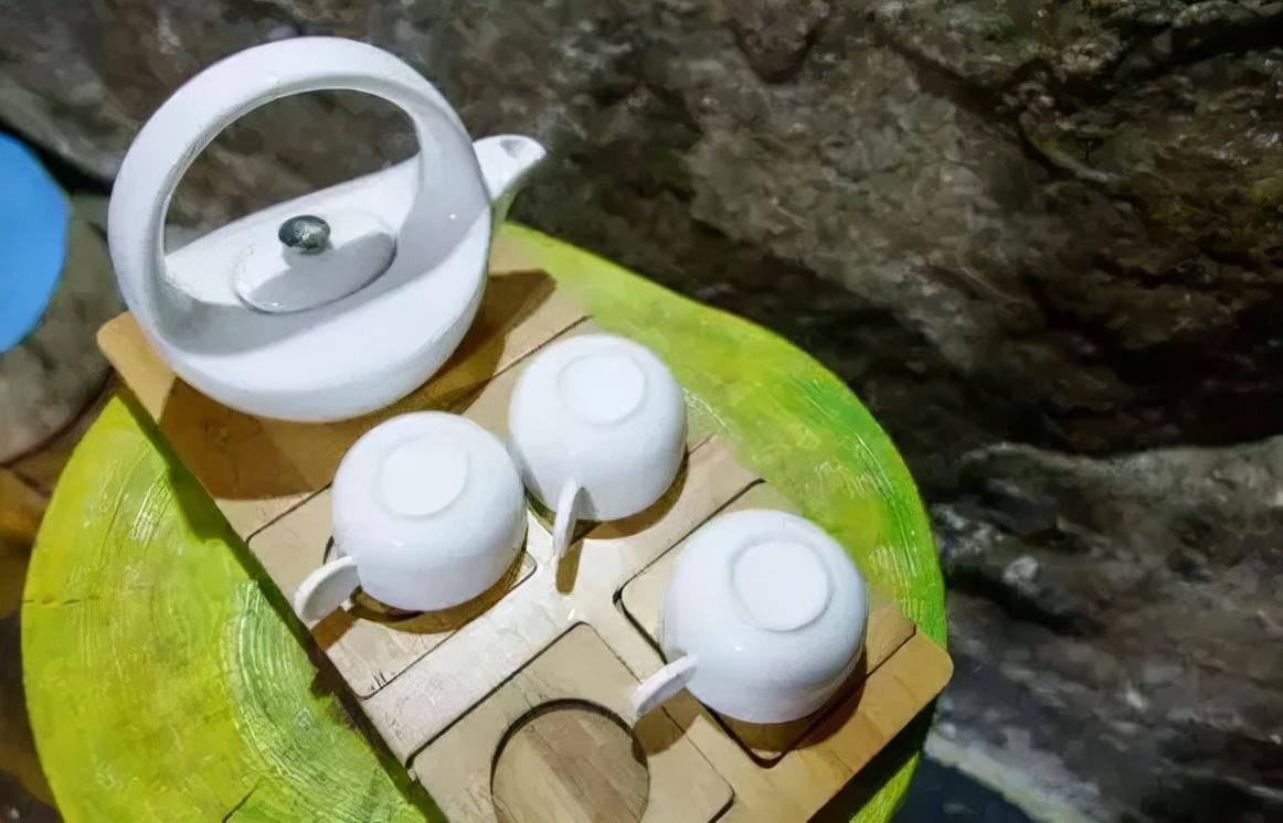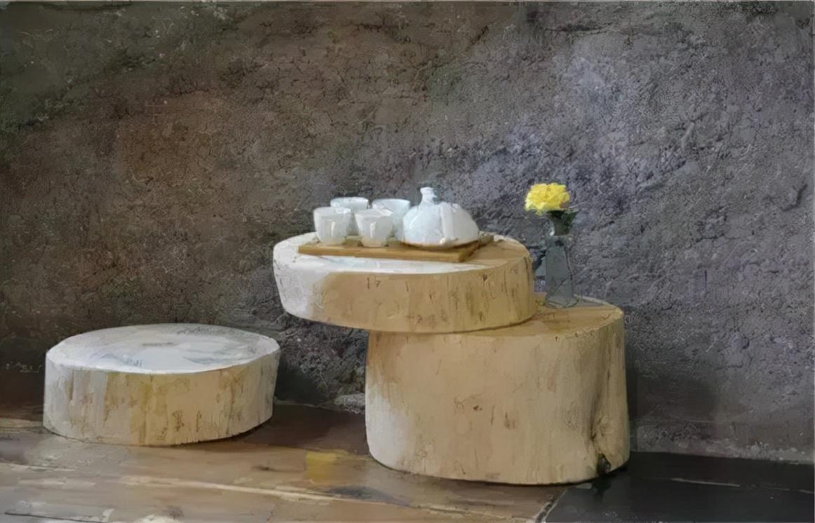 到处是充满设计感的景观,大多是生活常见的物品,稍作加工便成了艺术品,石头、木头构成了景观的主元素。