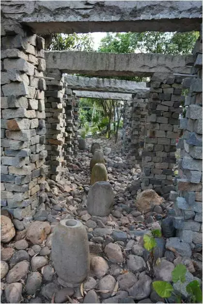 “圆屋”这套房子考虑到环保,冬暖夏凉这样一个概念,所以地上部分,全部是用石头堆的。沙子填进去,把石头放上去,然后撒上沙子,就是让它能调节干湿度,不至于非常的闷热或者干燥。