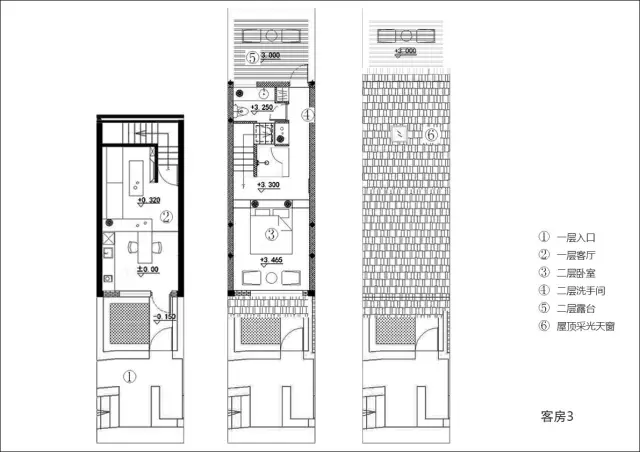 ▲东客房部分的隔断墙,起分隔空间的作用,但上方并没有隔断,保证了空气的流通。