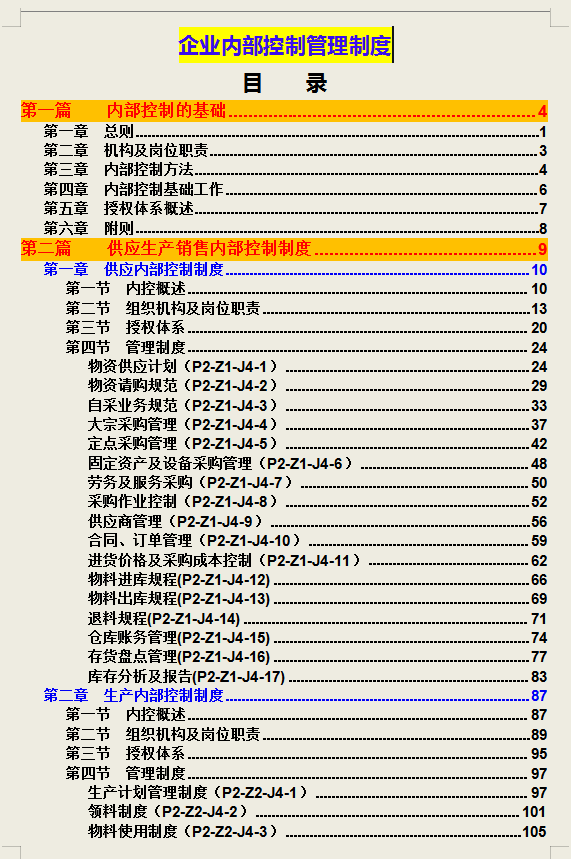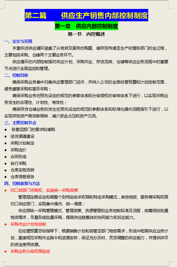 第一章 供应内部控制制度
