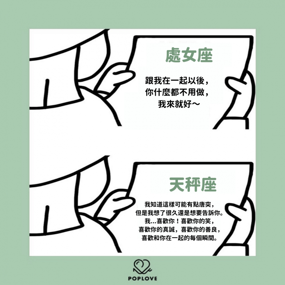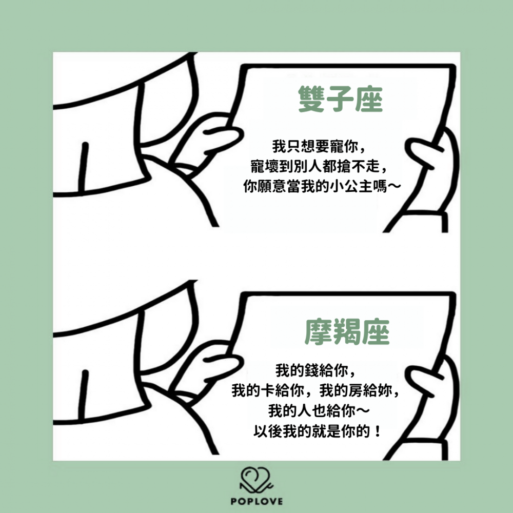 摩羯座认为将自己的一切分享给喜欢的人是一种承诺也是爱你的表现。真不知道要说你们真实还是古板好呢~虽然他们不常把「我喜欢你」挂在嘴边,但是他们的告白却能让对方感到很实际又安心~