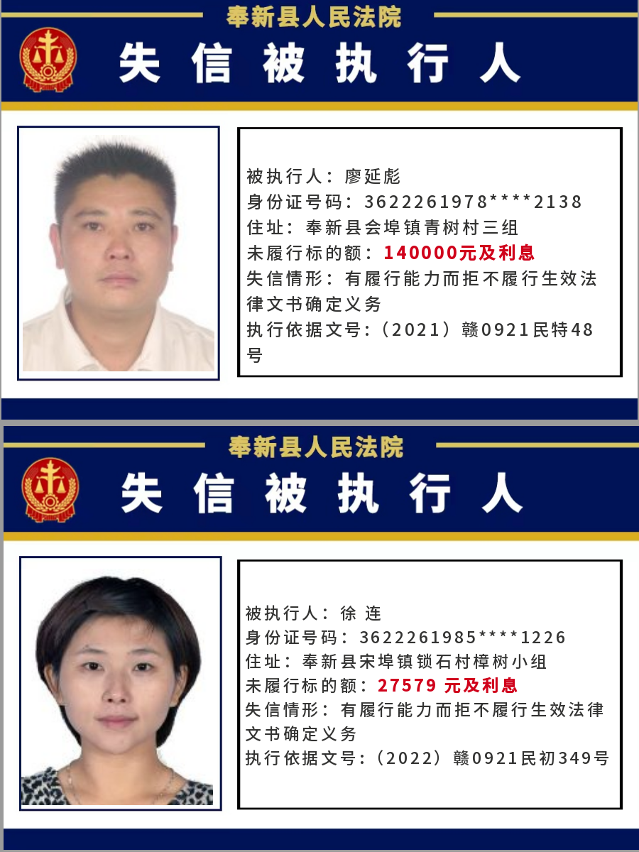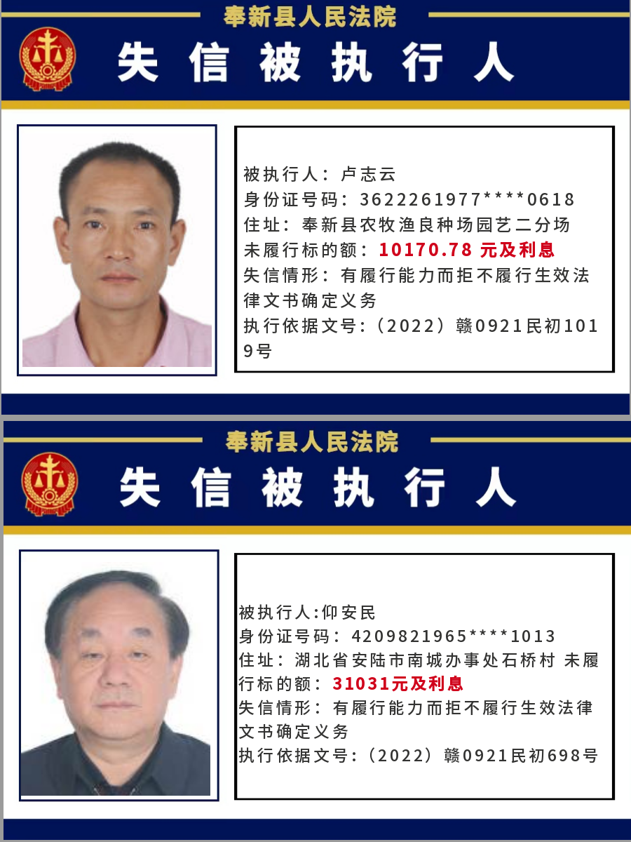 为进一步加大执行公开力度,维护法律的权威与尊严,保护当事人的合法权益,制裁规避执行行为,推进社会诚信体系建设,依照《中华人民共和国民事诉讼法》,最高人民法院、最高人民检察院、公安部联合下发的《关于开展集中打击拒不执行判决、裁定等犯罪行为专项行为有关工作的通知》和《最高人民法院关于公布失信被执行人名单信息的若干规定》等法律、司法解释的有关规定,现敦促被执行人自觉履行生效法律文书确定的义务,征集执行线索并发布公告如下:
