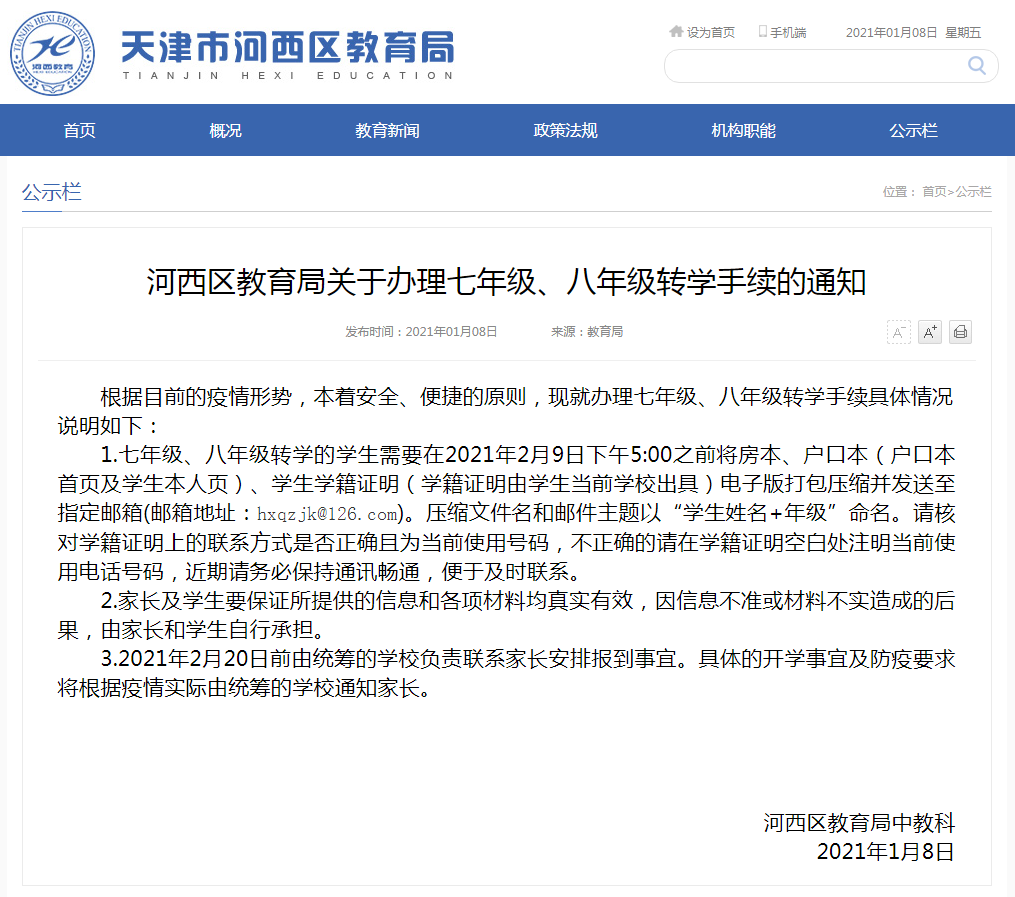 近日,河西区教育局公布了关于七年级、八年级转学手续的通知,其中这些重要的信息同学们千万不要忘记!