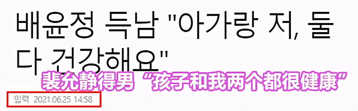 6月25号,有媒体报道,韩国女星裴允静官宣生子啦!