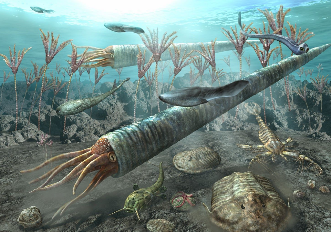 第一次生物大灭绝是在奥陶纪时,科学家们普遍认为是奥陶纪末期的冰期引起的,气候变冷致使海平面下降,造成了水中约85%的物种灭绝。本来物种异常丰富的沿海生物圈,就这样被破坏得七零八落。
