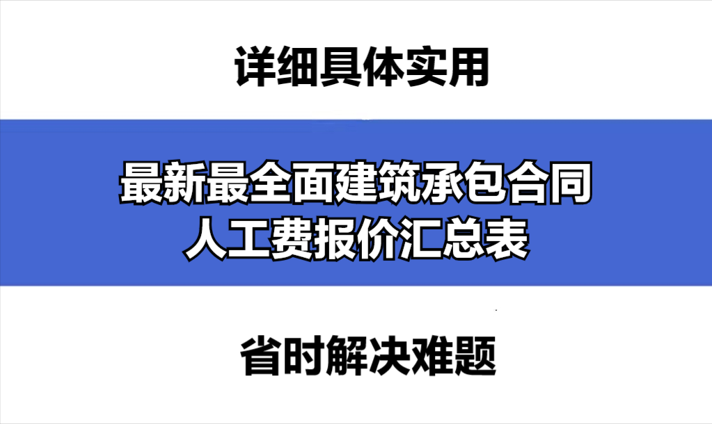 这份最新最全面建筑承包合同人工费报价汇总表,清晰易懂,内容全面详细。非常方便实用。可以轻松帮助你解决报价难题。建议收藏备用,省时省力标准不出错。