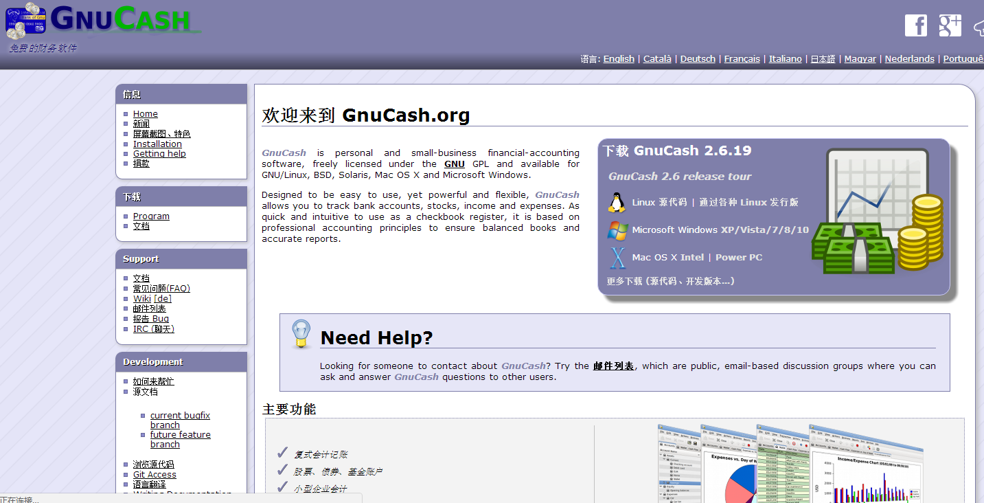 GnuCash 是一个可以用于个人或小型企业的免费财务软件,免费授权于 GNU GPL 软件,它支持多种操作系统,包括 GNU/Linux、BSD、Solaris、Mac OS X 以及微软 Windows。支持多国语言,当然还少不了简体中文。GnuCash 被设计为使用简单,但功能强大并且灵活。GnuCash 中文版允许您跟踪银行账户、股票、收入和支出。就像日常纸质账簿一样可以直观并且快速的使用。它基于专业的会计理念,以确保平衡的账簿和精准的报表。