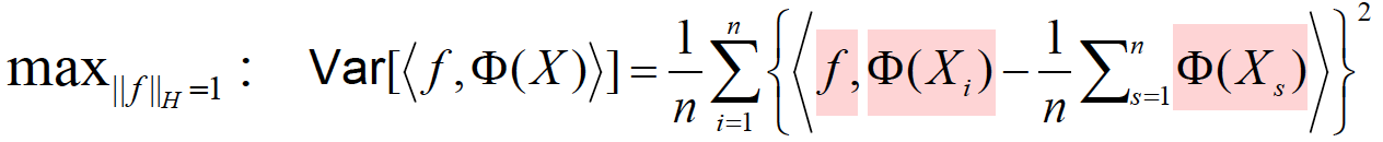 KPCA目标函数,是映射到新维度空间中对新基投影的方差寻找最大化:,