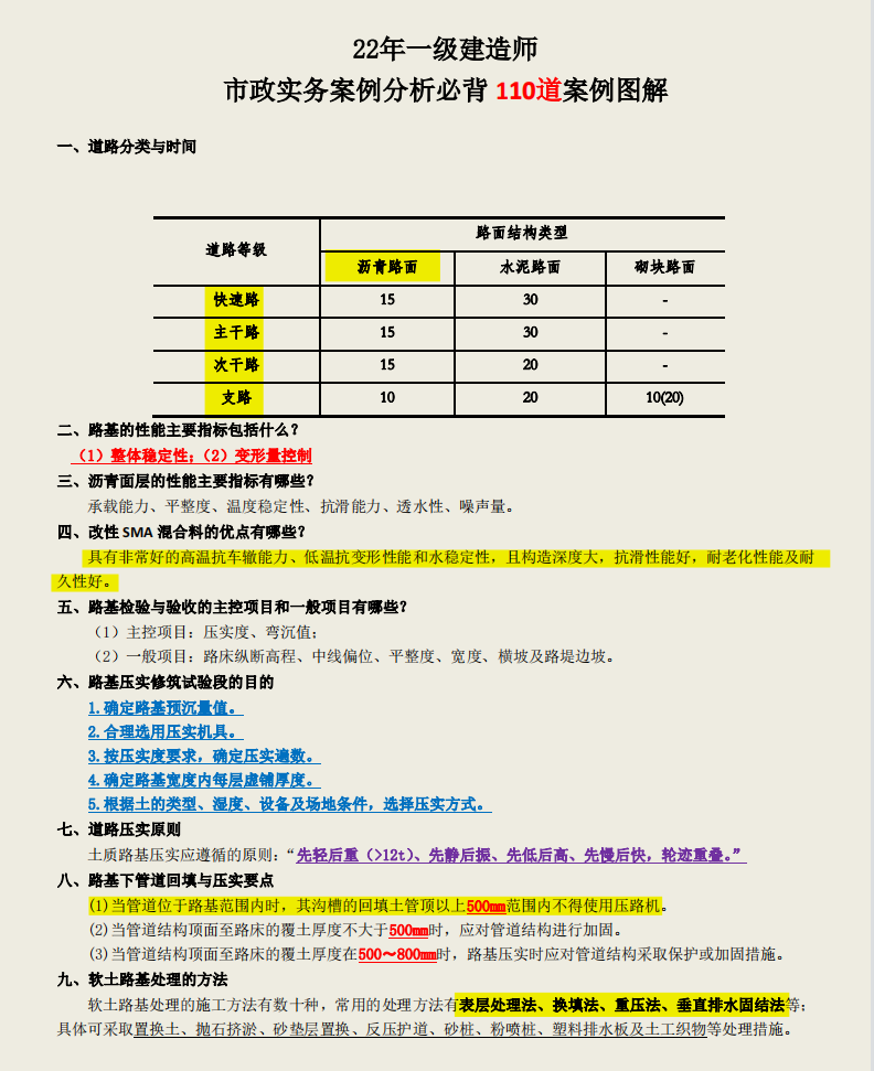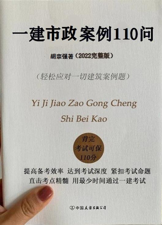一建胡宗强针对案例考核,将教材5%的案例考点筛选,总结出22年一建市政案例110问,浓缩98%的考点精髓,打印出来当书背,背熟保分115。