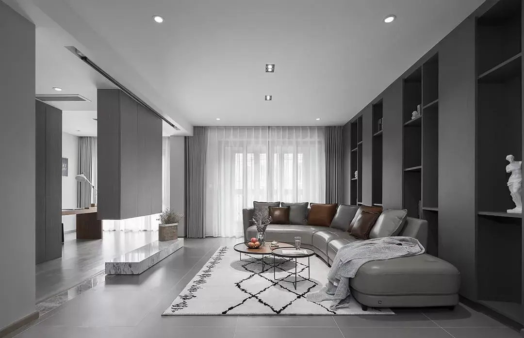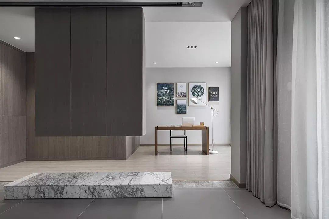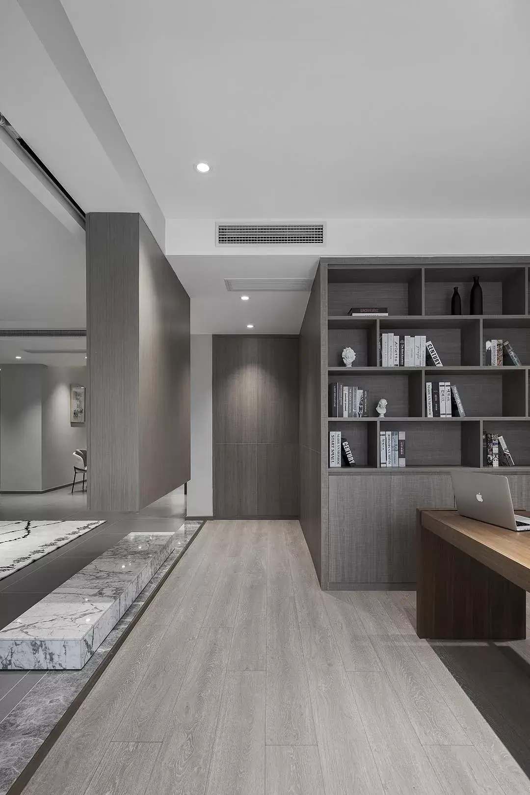 同样是黑白灰的空间,但此案通过洗炼的设计,成功营造低调美感;而且在注重空间呈现的效果之外,也维持了家居该有的生活功能,让极简设计不会沦为好看却不实用的”花瓶”,让身心需求在设计里真正实现。