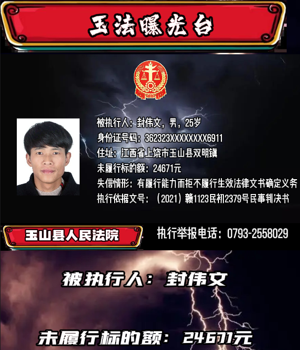 版权声明:我们致力于保护作者版权,注重分享,被刊用文章【法院曝光失信人名单(最高欠了15万元)】因无法核实真实出处,未能及时与作者取得联系,或有版权异议的,请联系管理员,我们会立即处理! 部分文章是来自自研大数据AI进行生成,内容摘自(百度百科,百度知道,头条百科,中国民法典,刑法,牛津词典,新华词典,汉语词典,国家院校,科普平台)等数据,内容仅供学习参考,不准确地方联系删除处理!;
