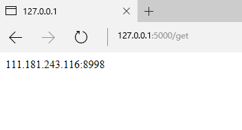 访问http://127.0.0.1:5000/get可以获取一个可用代理。