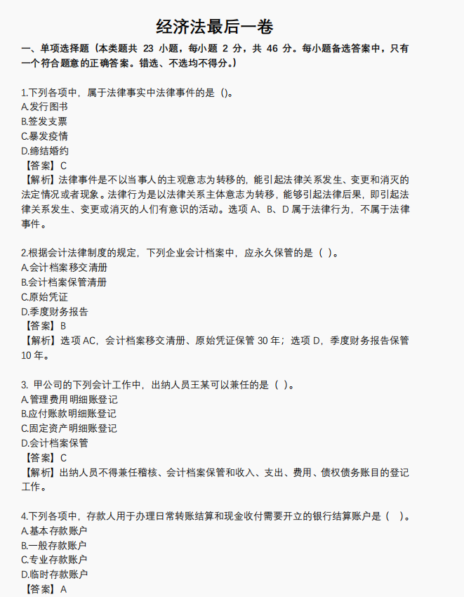 版权声明:我们致力于保护作者版权,注重分享,被刊用文章【基础会计题目(2022初级会计考前70分)】因无法核实真实出处,未能及时与作者取得联系,或有版权异议的,请联系管理员,我们会立即处理! 部分文章是来自自研大数据AI进行生成,内容摘自(百度百科,百度知道,头条百科,中国民法典,刑法,牛津词典,新华词典,汉语词典,国家院校,科普平台)等数据,内容仅供学习参考,不准确地方联系删除处理!;
