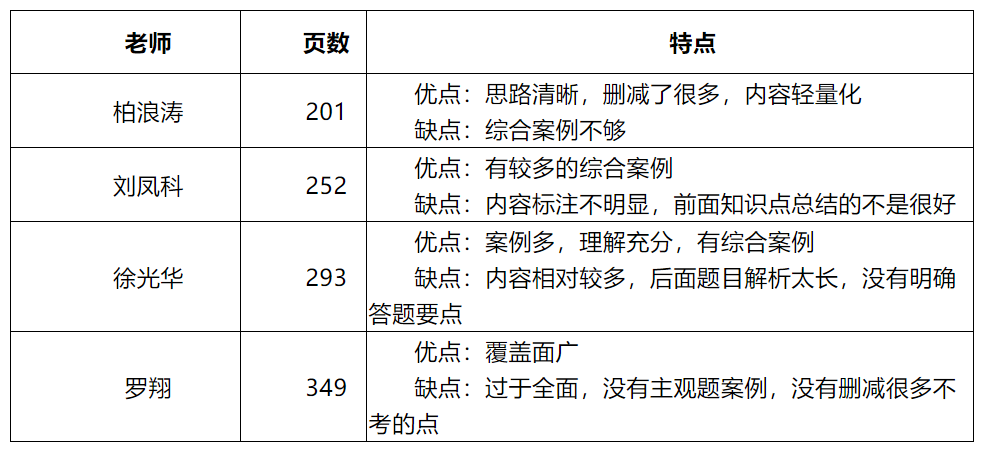 1、柏浪涛:对于需要区分的考点有图表形式的总结,对于一些需要判断的问题有公式,对于易错易混及重要的知识点,有少量的下划线进行提醒。案例植入的数量相对较少,都是小案例,也没有综合性的大案例分析,因此书本最薄,只有201页。
