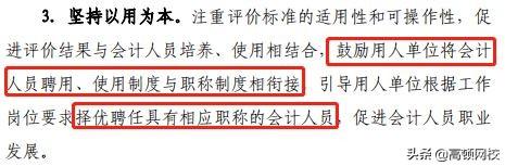 鼓励用人单位将会计人员聘用、使用制度与职称制度相衔接,引导用人单位根据工作岗位要求择优聘任具有相应职称的会计人员,促进会计人员职业发展。