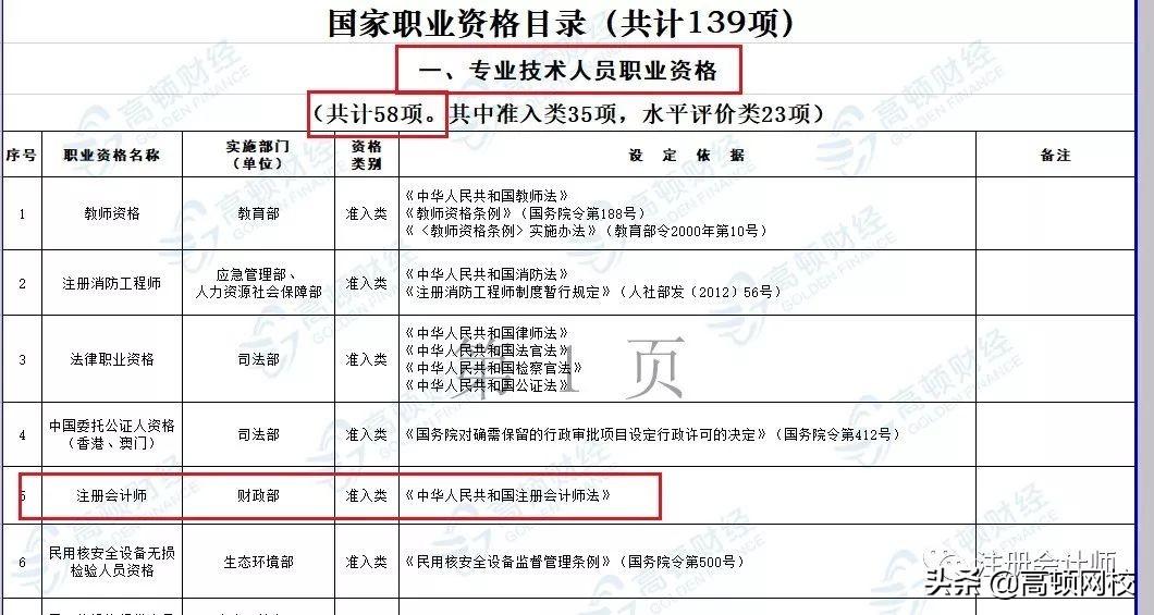 这58项专业技术职业资格目录中包括注册会计师和会计职称证书!