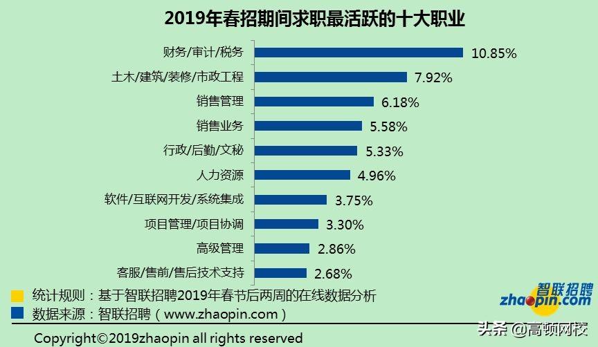2、财会行业中的税务、财务、审计岗位成为职场香饽饽,位列求职人数最多的10大职业之一,排名第1
