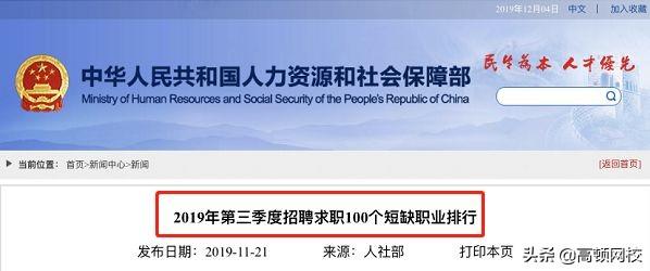 近日,中国就业培训技术指导中心发布102个定点监测城市公共就业服务机构人力资源市场《2019年第三季度全国招聘求职100个短缺职业排行》。这是全国层面首次汇总发布人力资源市场招聘求职短缺职业排行。