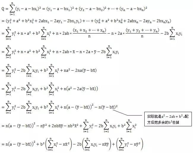 这样可以得到误差平方和最小时b(斜率)和a截距的值: