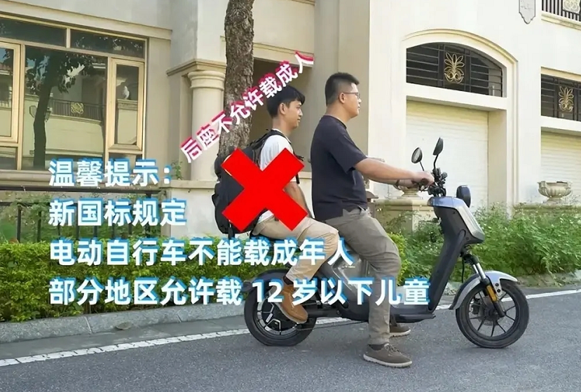 其实,不仅是新国标电动自行车载人有限制,电动车分为三大类,在载人方面,都有一定的限制,电动自行车是禁止载12周岁以上人员,电动轻便摩托车是禁止载人,即便是完全按照摩托车级别管理的电动摩托车,也有只能载1名成人的要求。