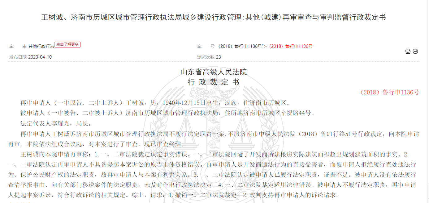 2017年5月23日,王某某同其他24人通过信访的形式向济南市历城区城市管理行政执法局举报某公司弄虚作假、虚报建筑面积等行为,要求其书面回复、公示处罚结果。后王某某提起行政诉讼,诉求判令行政执法局履行法定职责,依法查处某公司建筑面积造假、坑害消费者、非法谋取暴利、扰乱房地产市场秩序的违法行为。