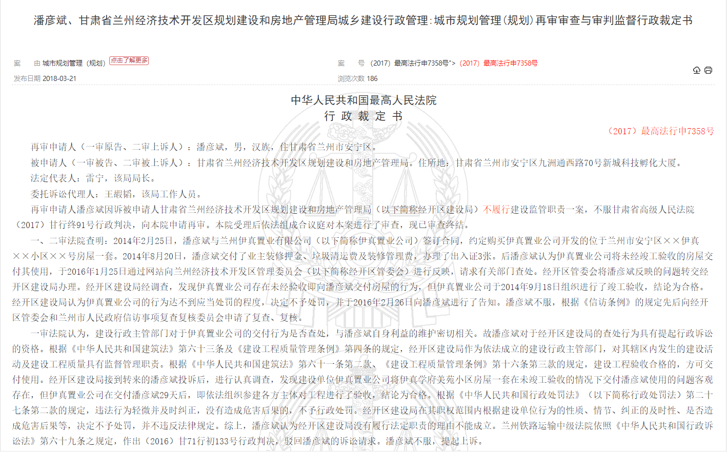 潘某某以经开区建设局不履行法定职责提起行政诉讼,,一审、二审法院均认定经开区建设局不属于不履行法定职责,驳回潘某某的诉讼请求。潘某某不服,向最高人民法院申请再审,法院驳回其再审申请。
