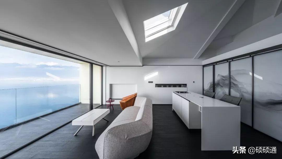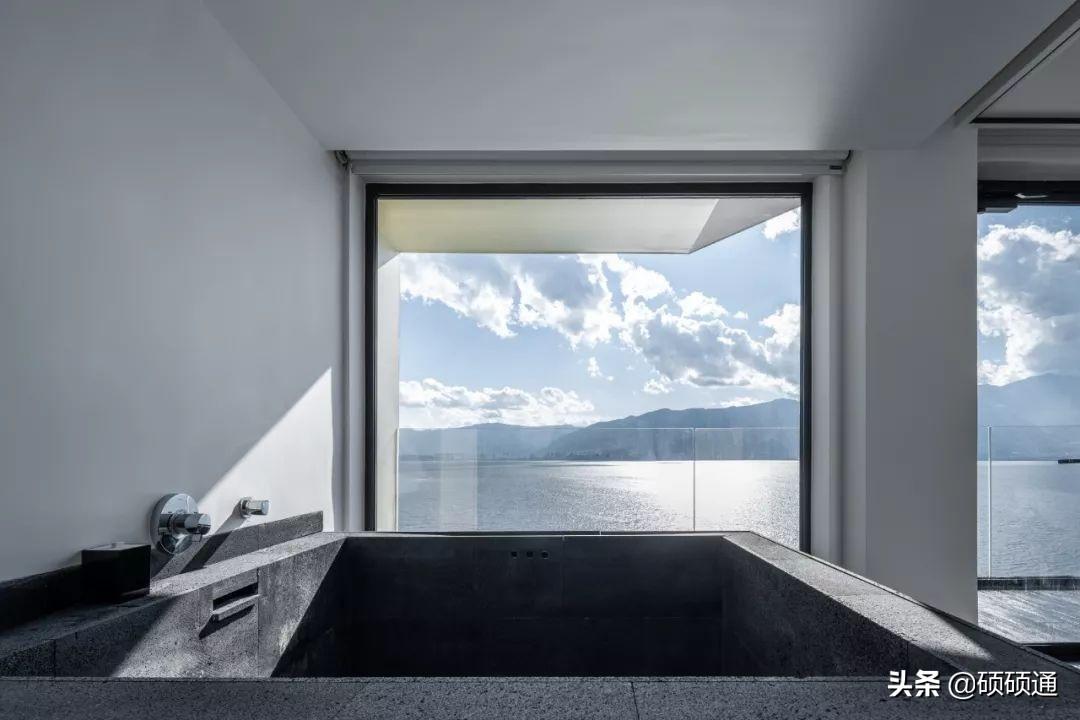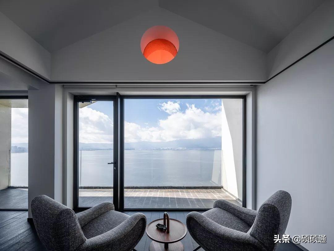 窗一定要开到最大,阻碍视线的铝竖梃要减光,增加造价也在所不惜,因为要无阻碍地把风景变成室内的主角才是第一位的。房间要空旷,功能和装饰要减少到刚刚好。