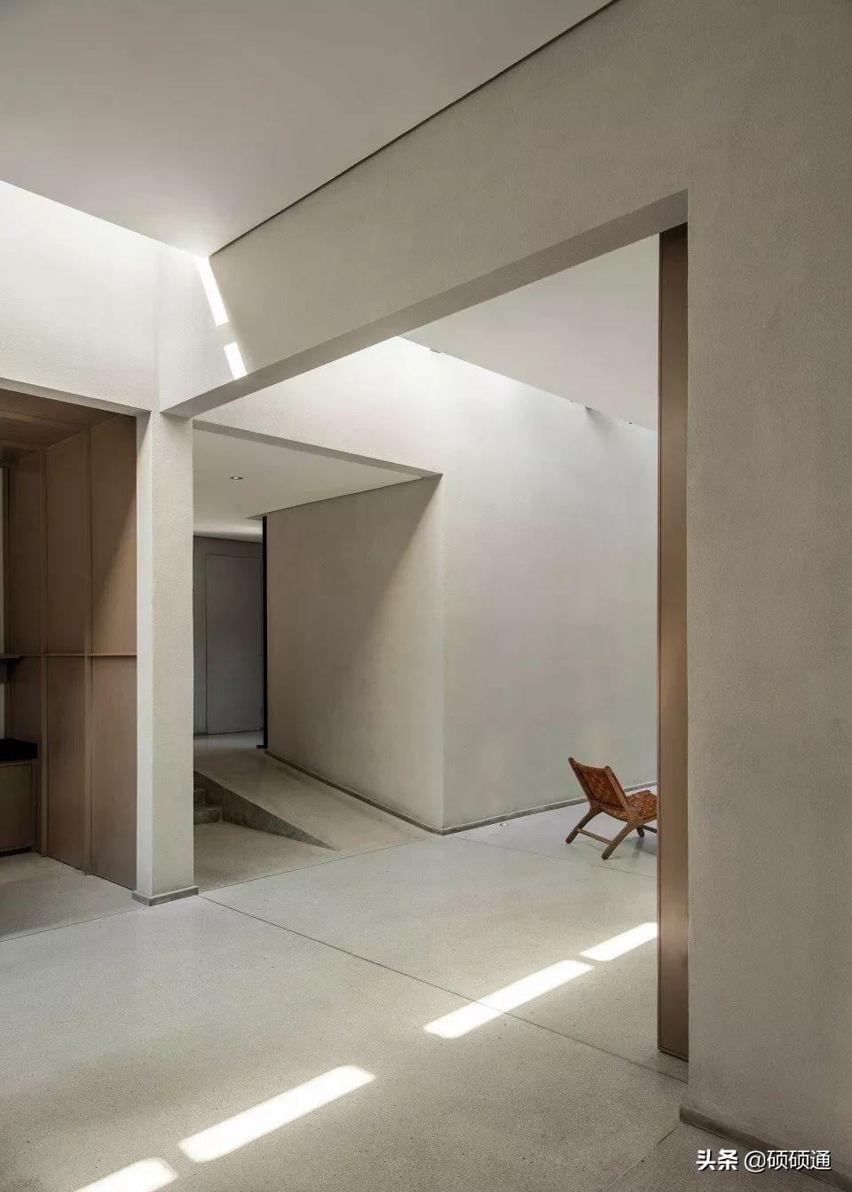 室内空间的设计中充分地考虑了光的作用,光即阴影,当室内极简的装饰和色彩都匿于空间的厚重之中,只有光和阴影在墙壁和地面交响,构筑出光与场所的精神性,激发出人们强烈的情感共鸣。