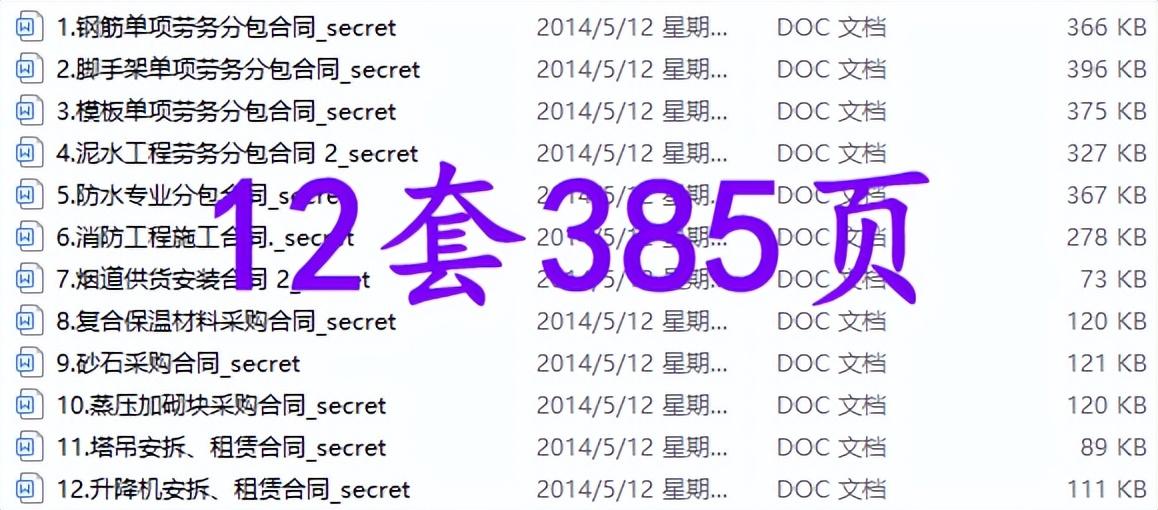 合同难整理?中建施工合同及劳务分包合同范本,范本内容规范标准,都是标准模板,Word文档直接参考套用就行,方便省事,适合各大建筑公司在施工和劳务分包中使用。